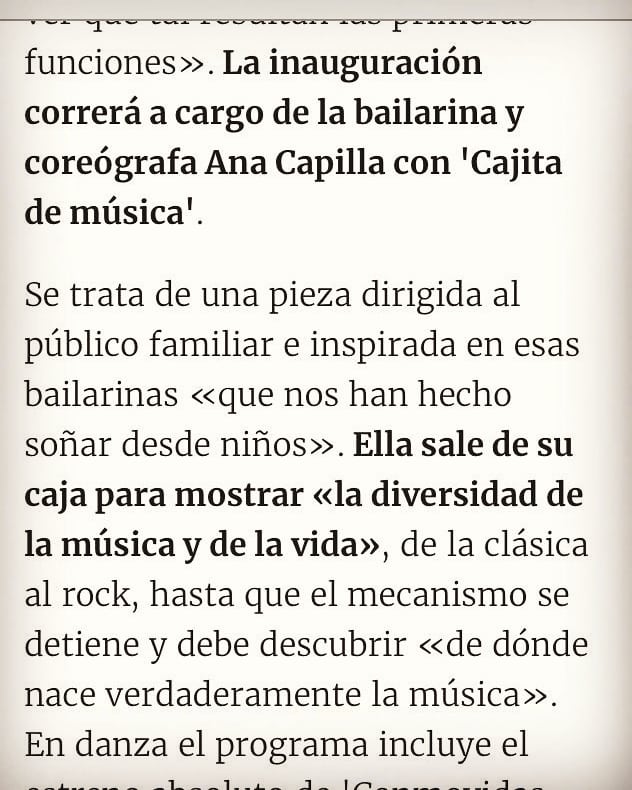 Se presentaba esta semana en el periódico, el comienzo del Circuito de teatro y danza de Bilbao que inauguramos hoy, con la obra para todos los públicos «Cajita de música».